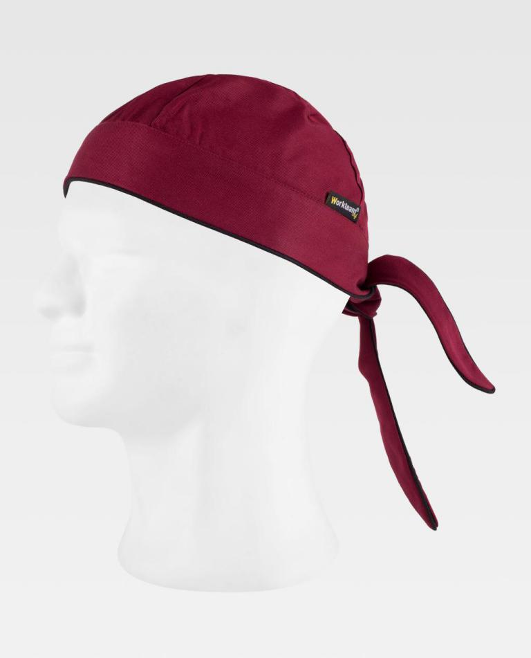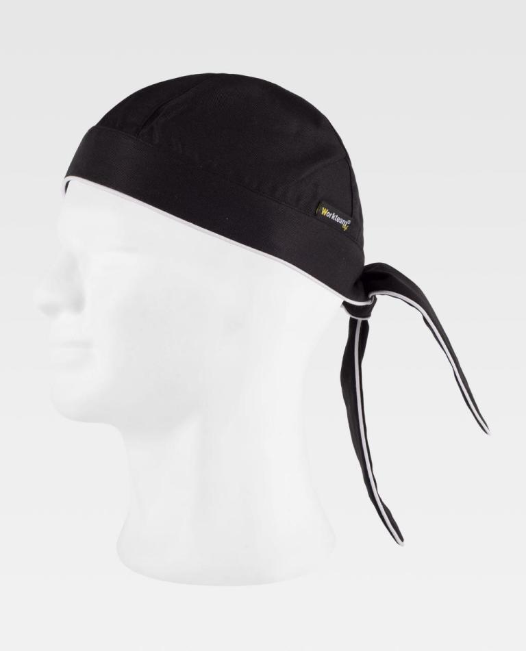 Bandana con cinta ancha para ajustar en la nuca rematada con vivos a contraste.