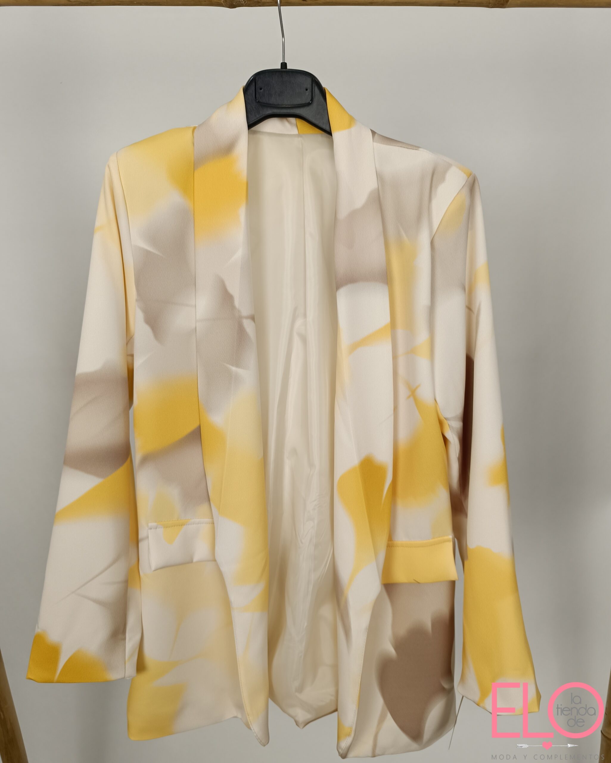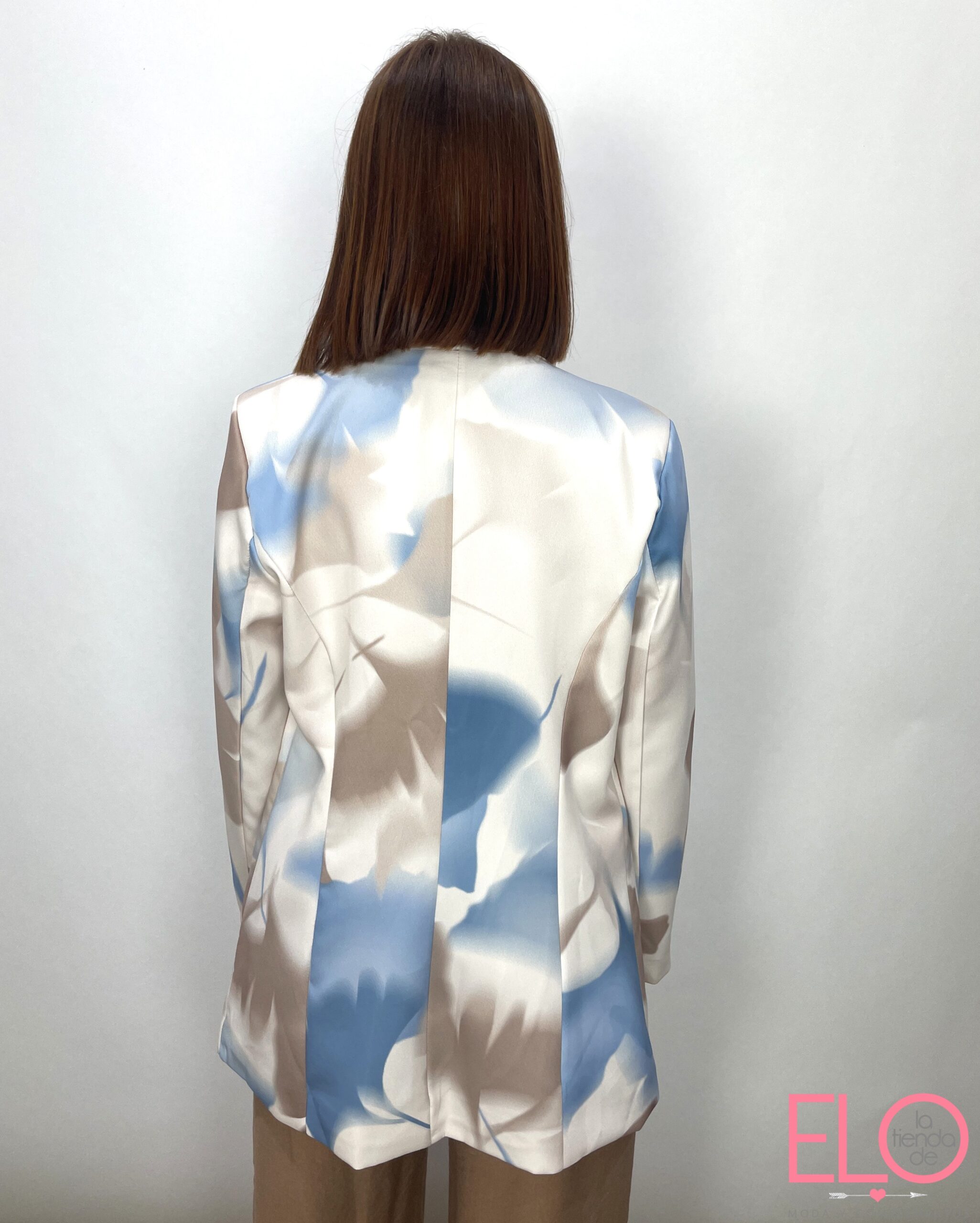 Blazer abierta con estampado floral, disponible en varios colores.
