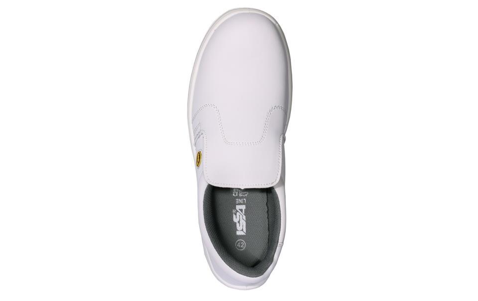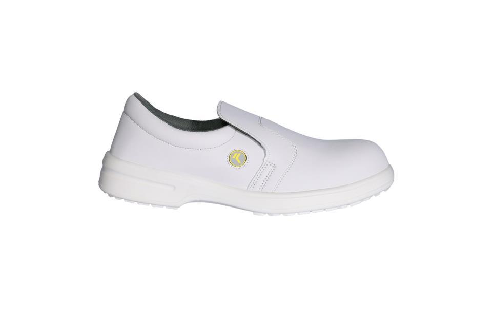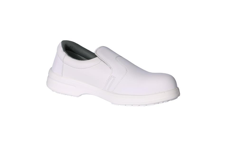 Calzado de seguridad en microfibra recomendado para la industria alimentaria, suela en PU y puntera metálica.